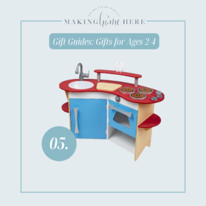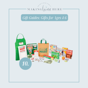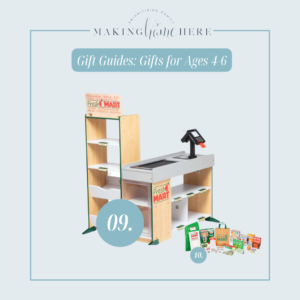 - Grocery Store– This was a grand finale gift for one of our kiddos one year and it is still such a hit! The scanner makes a beep noise when you roll items over it and there’s a cash register underneath. It is so much fun!