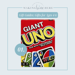- Giant Uno– How fun is this giant version?! We are big Uno fans and our kids were so excited when we found this big version last year!