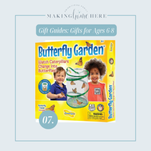 - Butterfly Kit– We did one of these kits several years ago and had the best time with it. It was so cool to watch the butterflies move through each stage of their life cycle and then release them in our backyard!