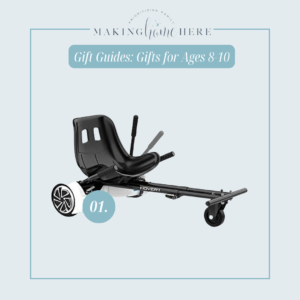 - Hover Board and cart attachment– This is actually really cool. The cart attachment makes in operate like a go cart. Ryan was so excited when he got this for his 9th birthday.