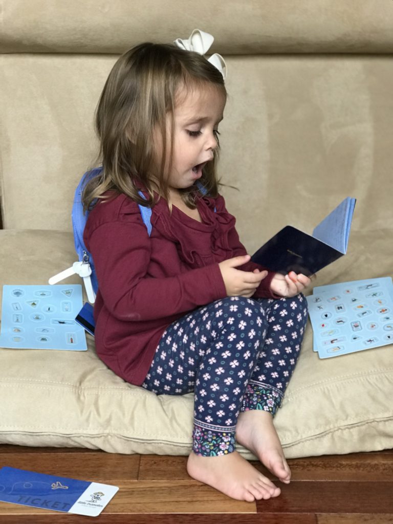 Tiny travel backpacks, passport books, stickers, plane tickets, and their very own credit cards- your little travelers will feel so grown up as they bring all of their travel essentials and fill their little bags with their favorite toys.