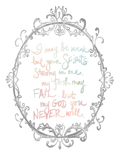 There’s a line that says, “I may be weak, but Your spirit’s strong in me. My flesh may fail, but my God, You never will. So give me faith to trust what You say- that You’re good, and Your love is great. I’m broken inside, I give you my life.”